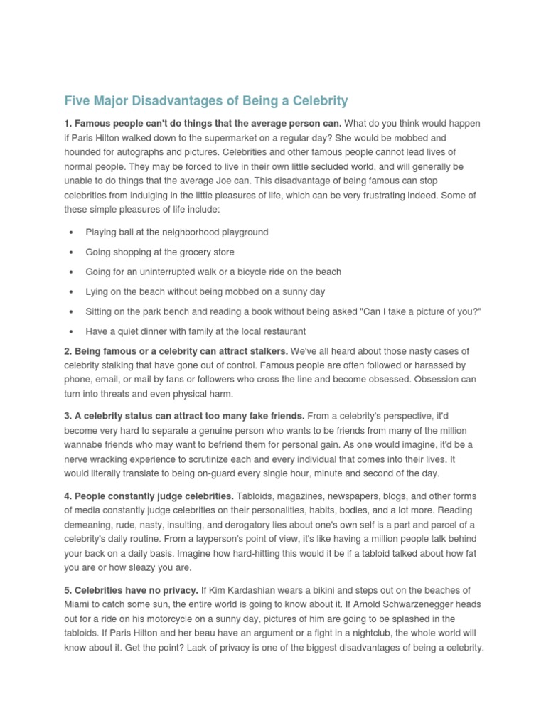 Disadvantages Of Being Famous - If you are a famous person all the people believe you have a wonderful life with no worries or problems.